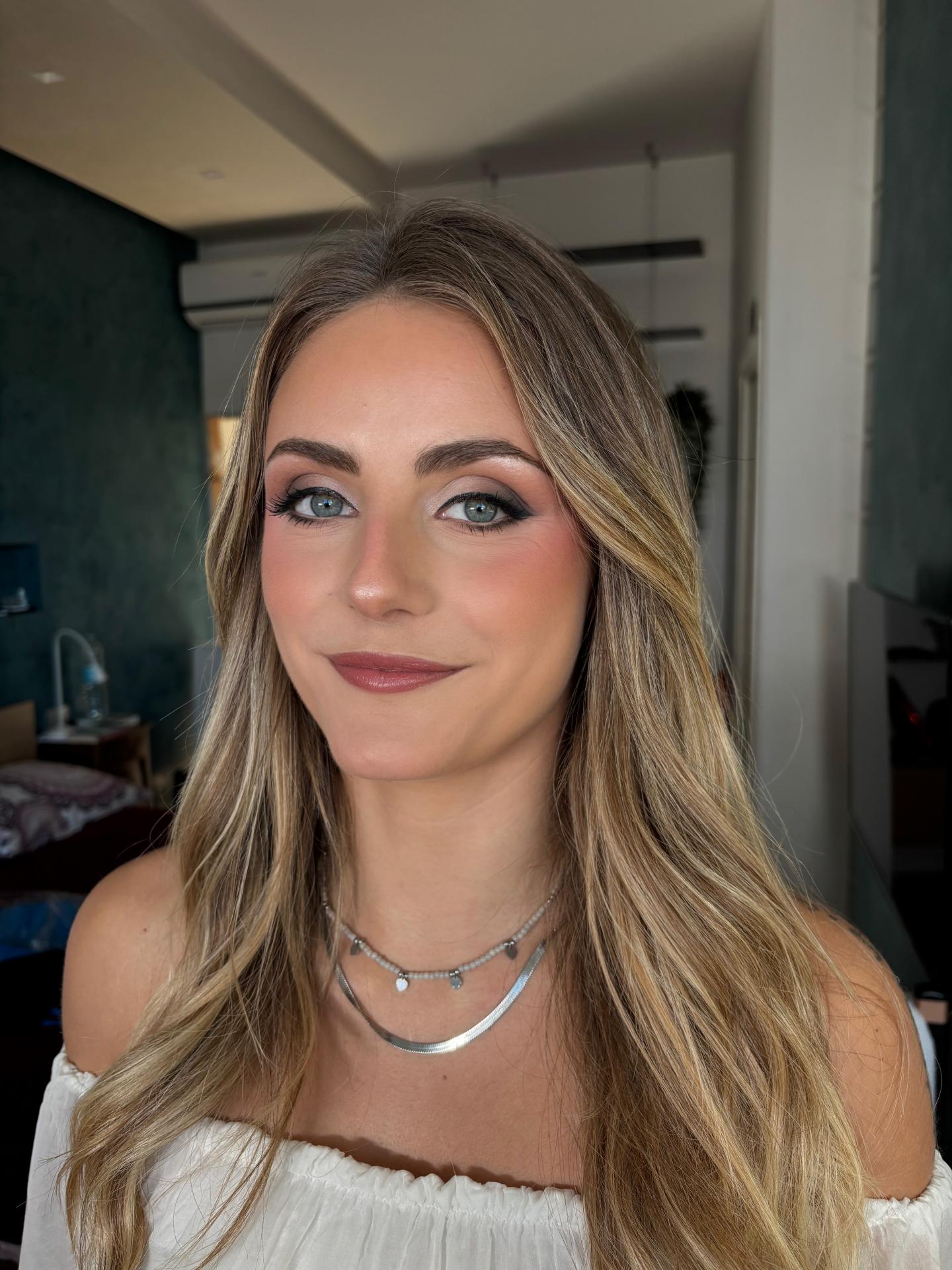 Un trucco sposa su misura, elegante e luminoso, pensato per valorizzarti in modo autentico e accompagnarti impeccabilmente per tutto il giorno.